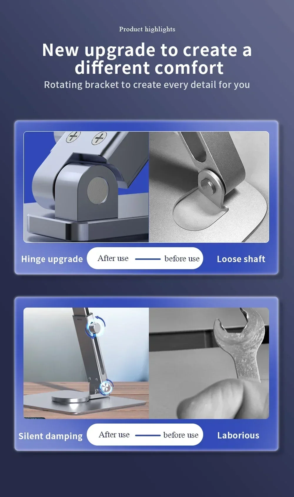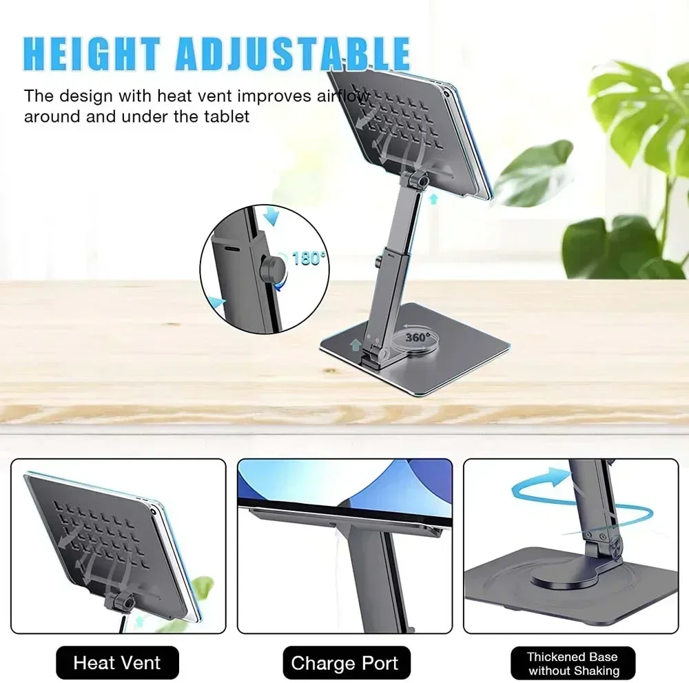 Aluminum Tablet Stand Desk Riser 360° Rotation Multi-Angle Height Adjustable Foldable Holder Dock For Xiaomi iPad Tablet Laptop