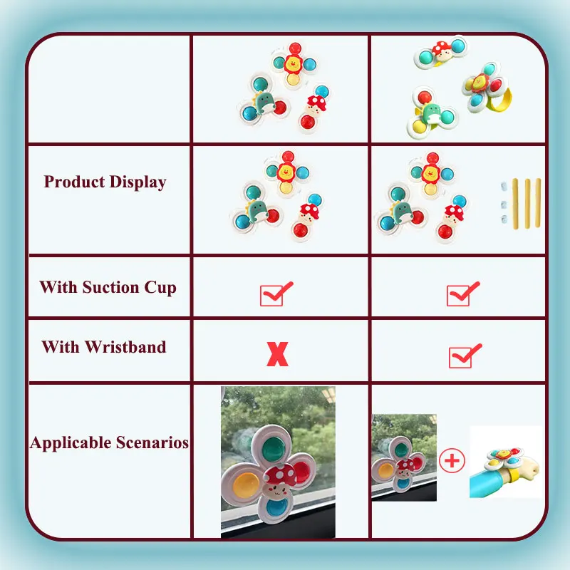 3PC Set Suction Cup Spinning Cartoon Animal Spinner Toys For Kids Window High Chair Tray Bath Table Travel for Children Gift