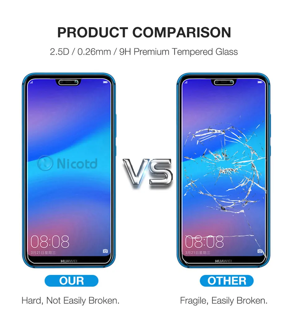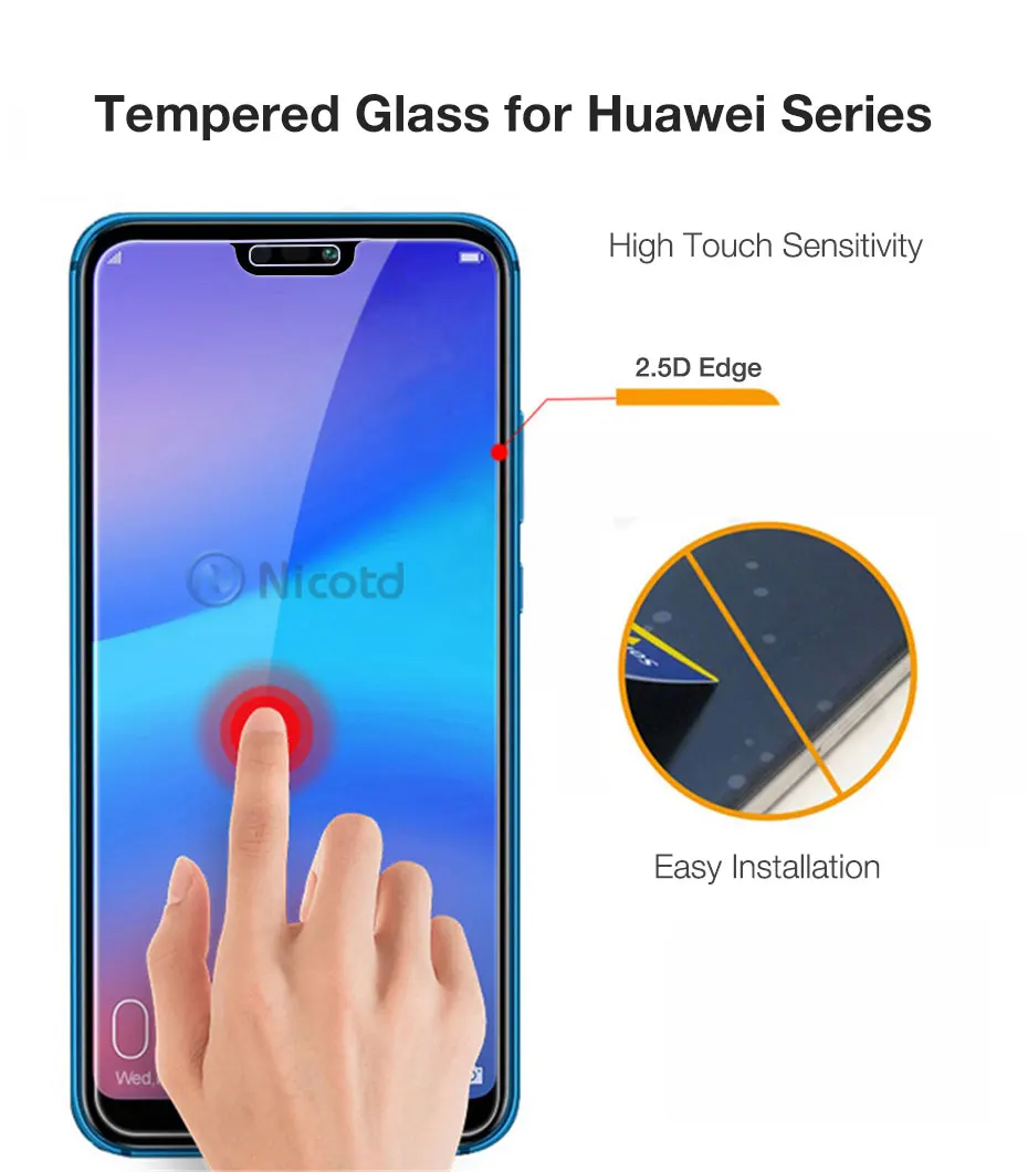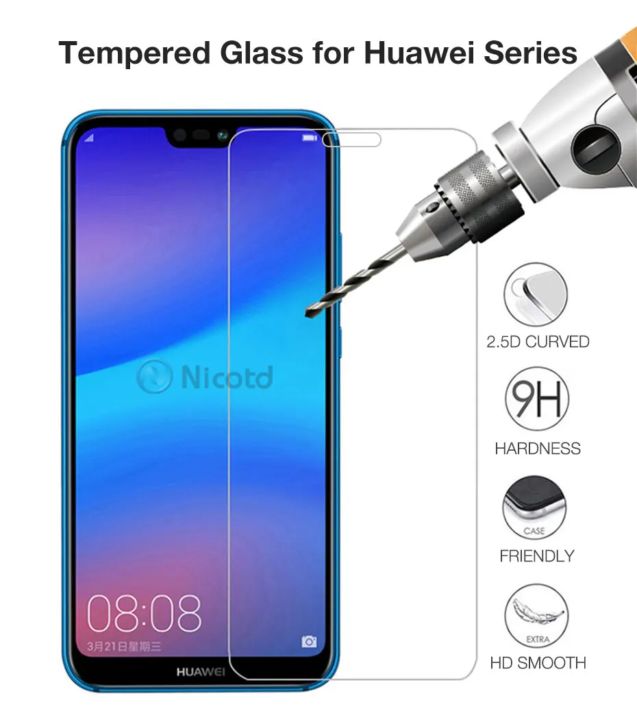 3Pcs Tempered Glass For Huawei P30 P20 lite Y6 P Smart 2019 Mate 20 Screen Protector On honor 8X 10 9 10i Huawei P20 lite Glass