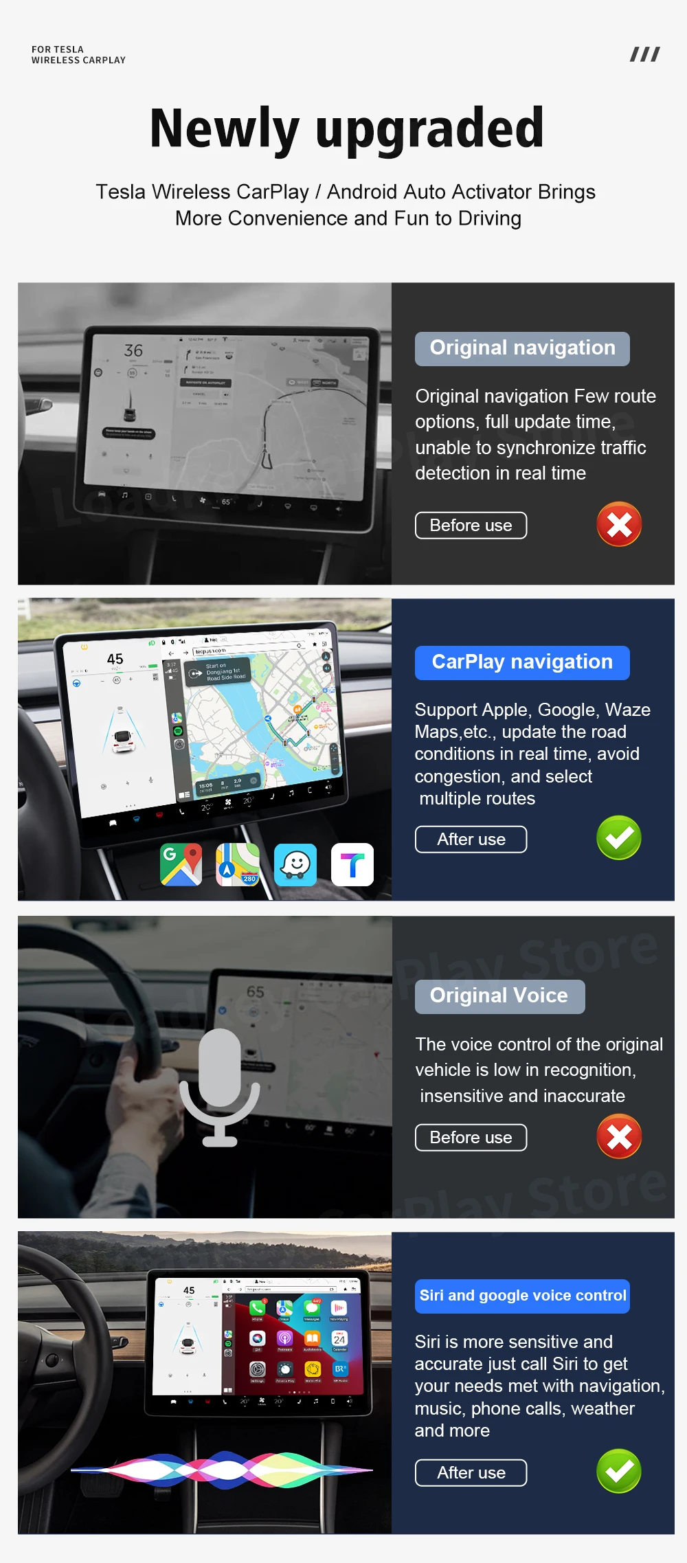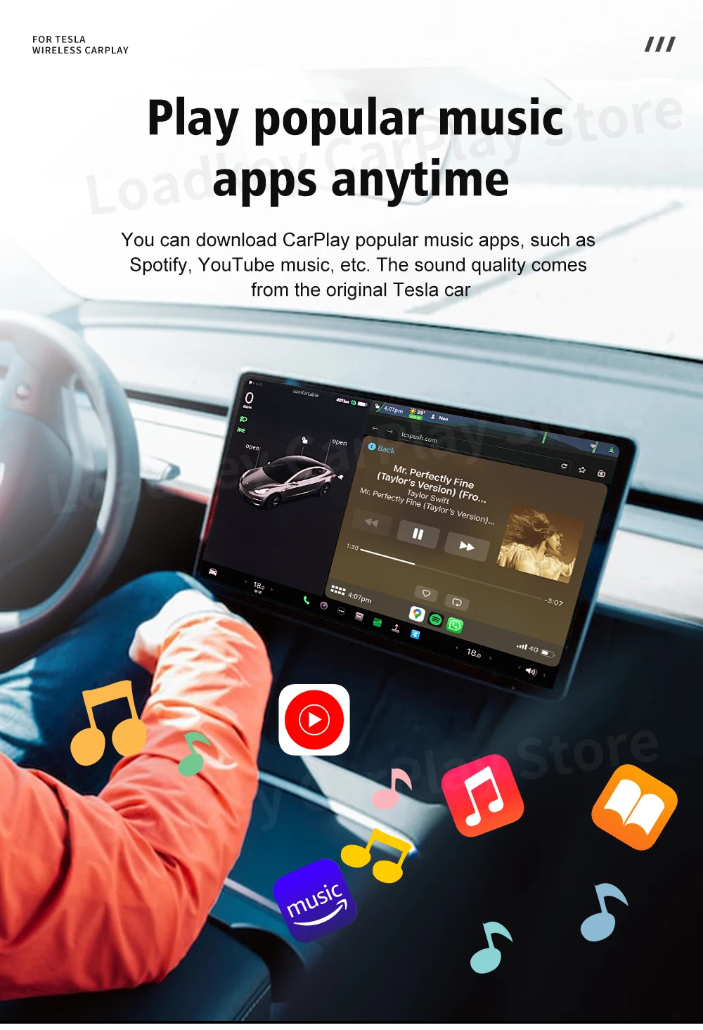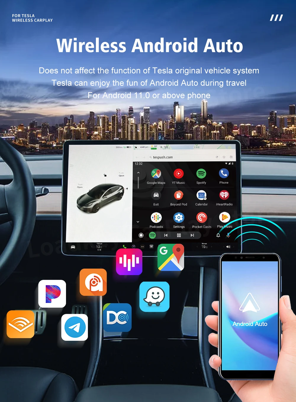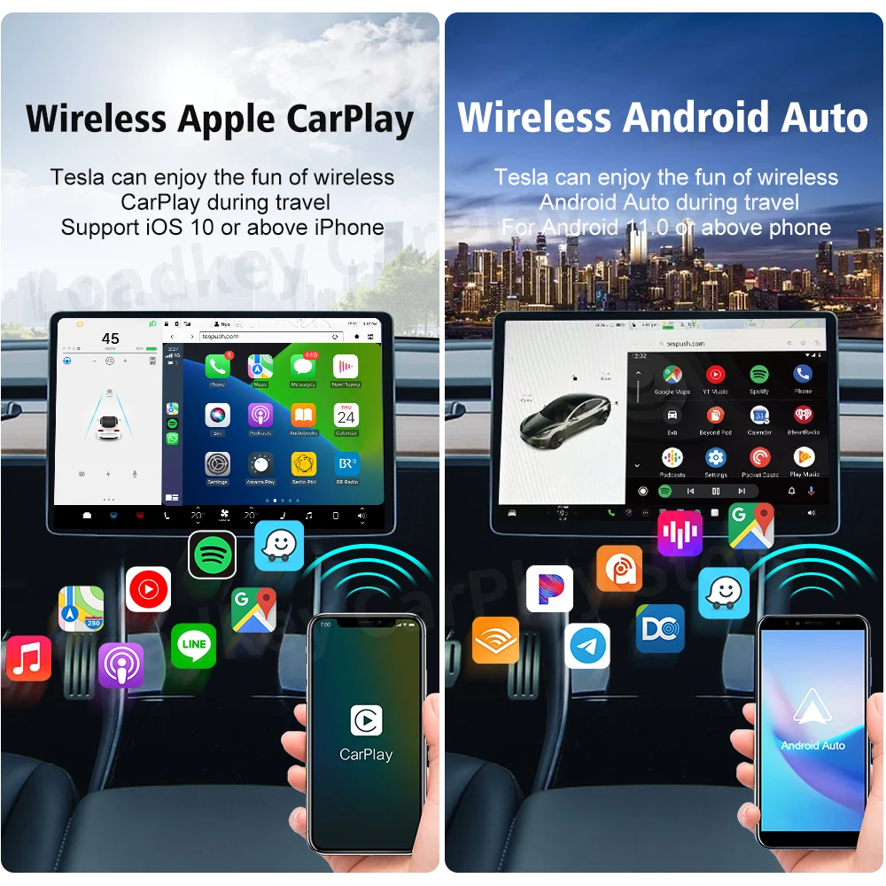 For Tesla’s original car screen is perfectly upgraded to Wireless CarPlay and Android Auto