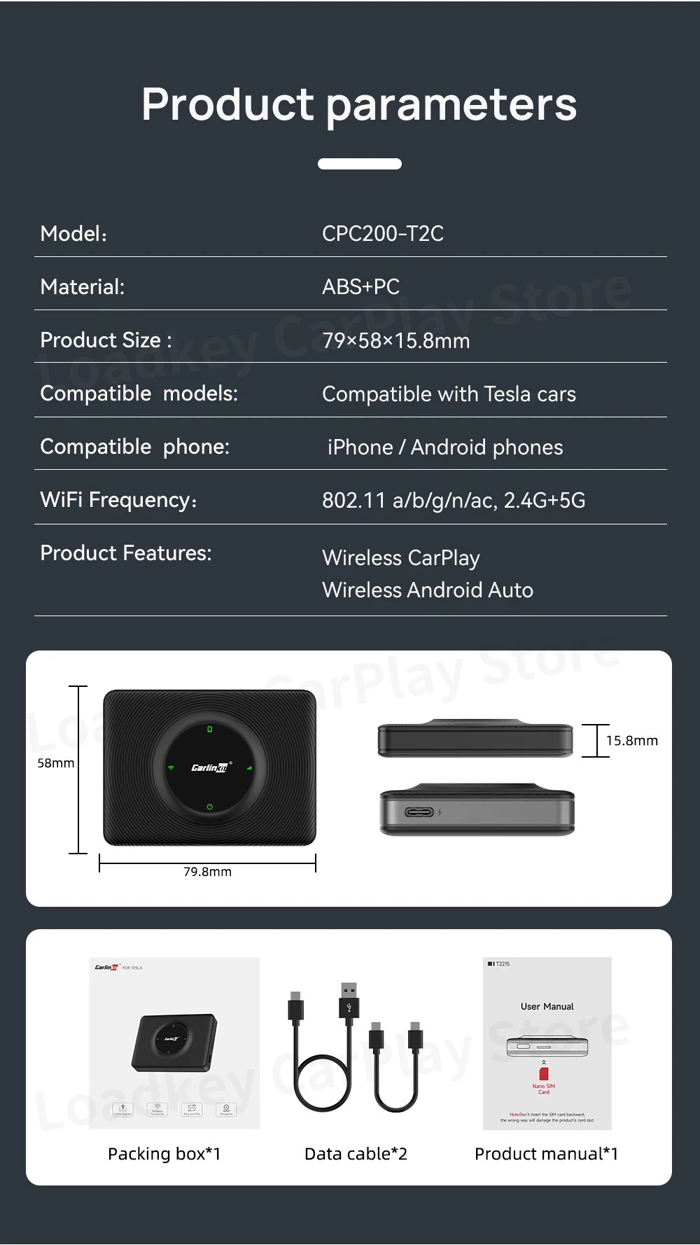Wireless CarPlay and Android Auto For Tesla Adapter