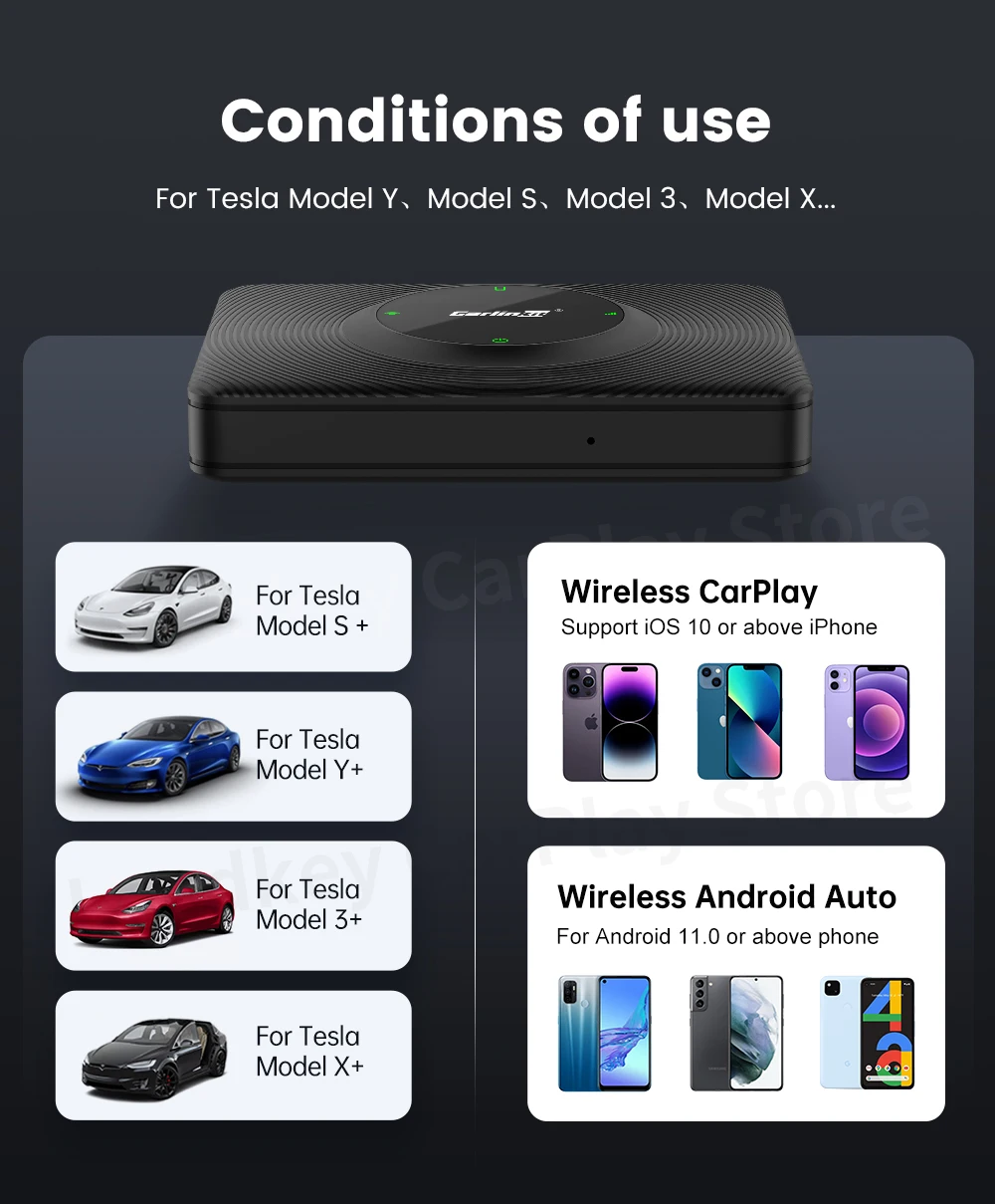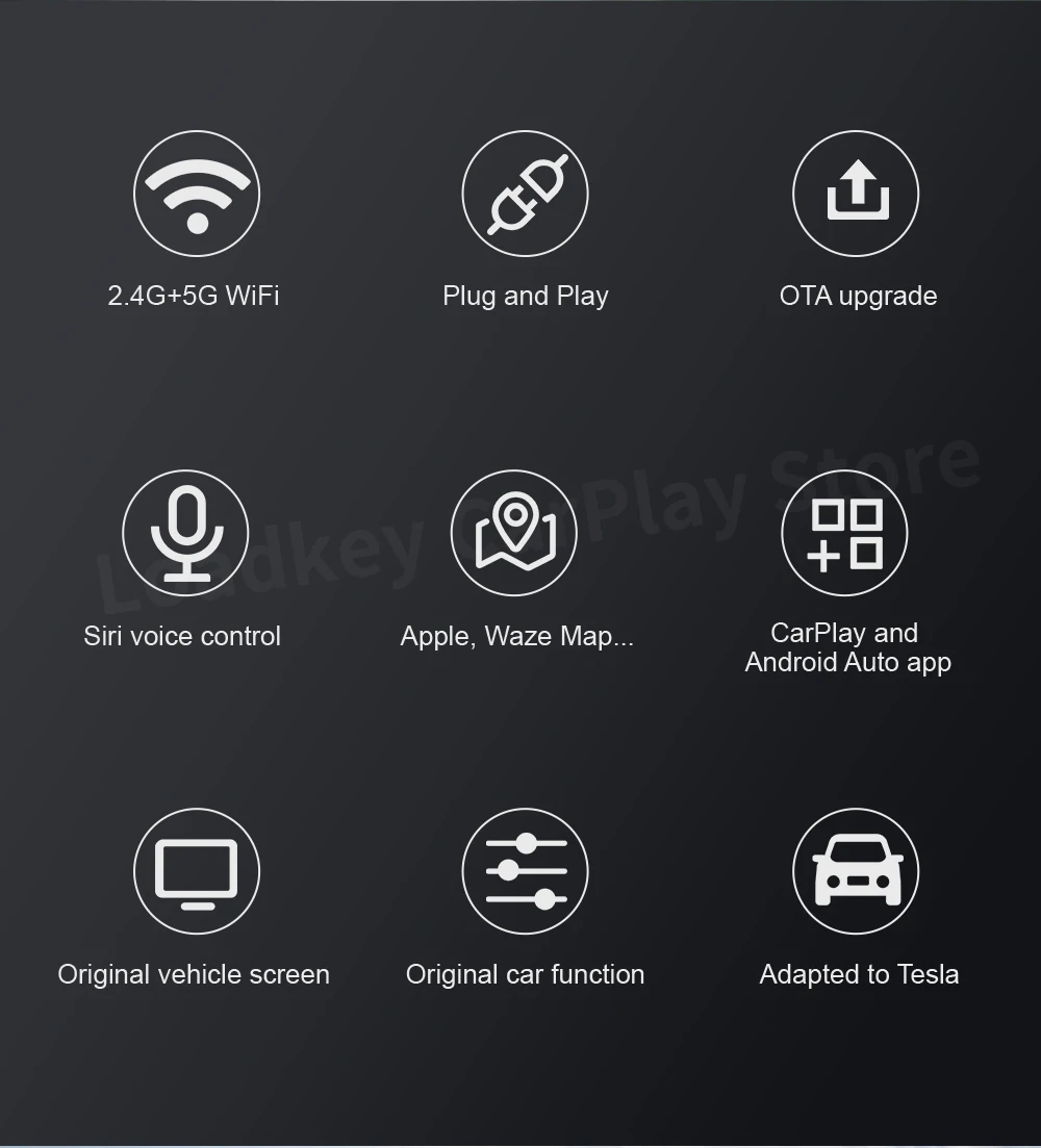 Wireless CarPlay & Android Auto For Tesla Model 3, Y, X, S 5G BT