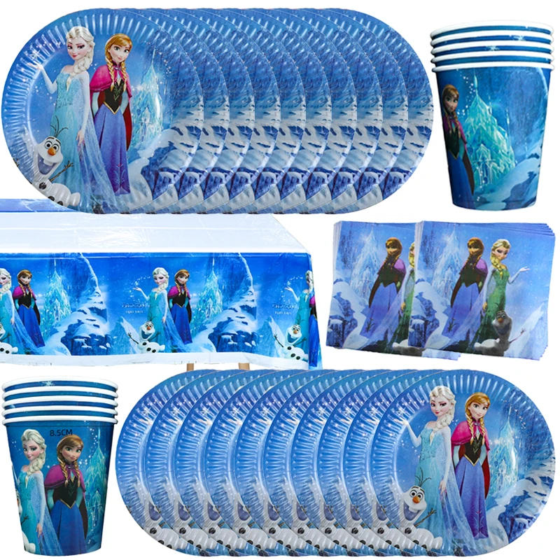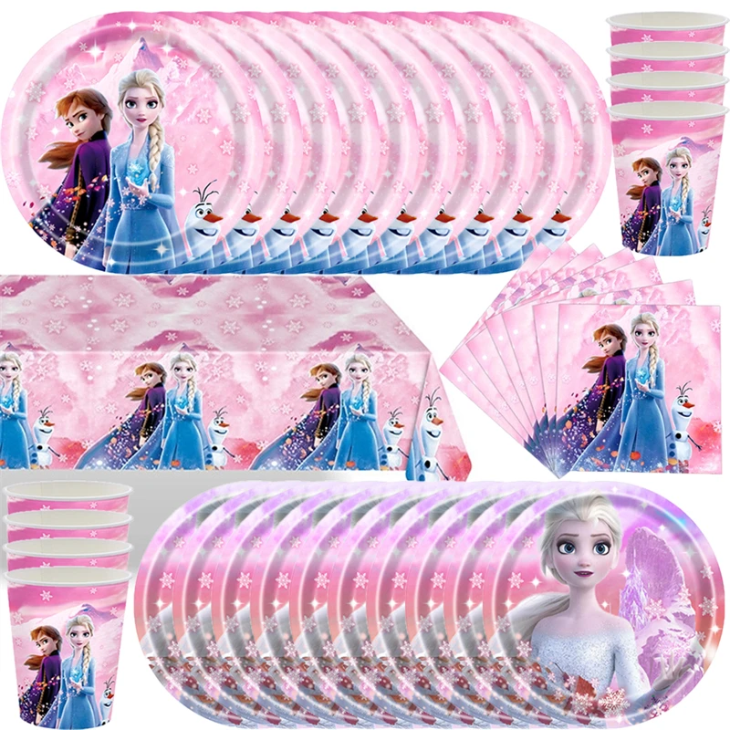 Disney Frozen Birthday Party Decoration Snow Queen Anna Elsa Pink&Blue Balloon Paper Napkin Plate Cup Kid Baby Shower Supplies