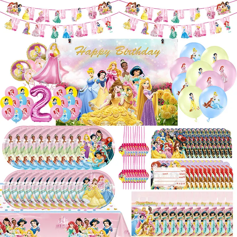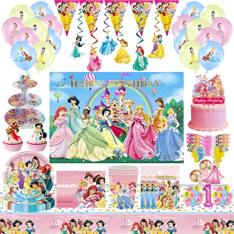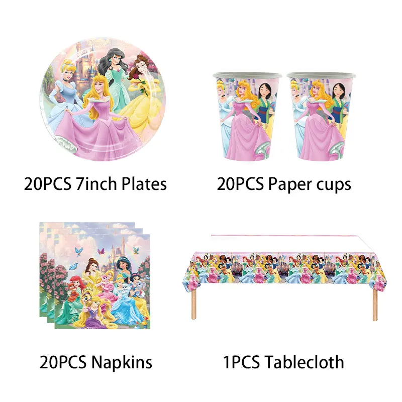 Disney Princess Party Decorations Paper Plates Napkin Cups Tablecloth Banner Balloon Gifts Bag Birthday Party Supplies for Girl