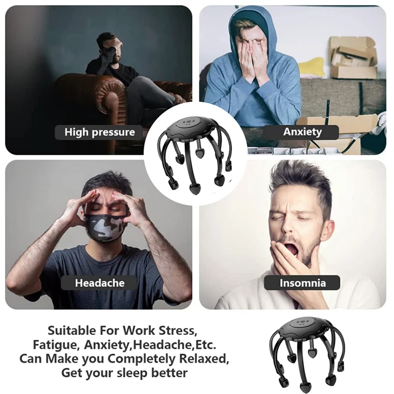 Electric Head Massager 5 Modes Vibration Octopus Claw Scalp Massager Relief Head Fatigue Improve Sleep Relaxation Head