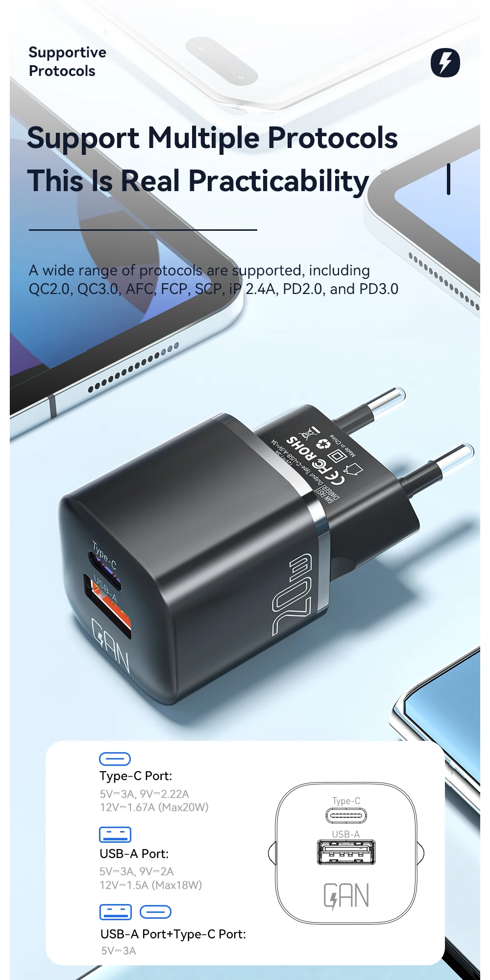 Essager 20W GaN USB Type C Charger PD Fast Charge Phone QC 3.0 Quick Chargers For iPhone 14 13 12 11 Pro Max Mini iPad Charging