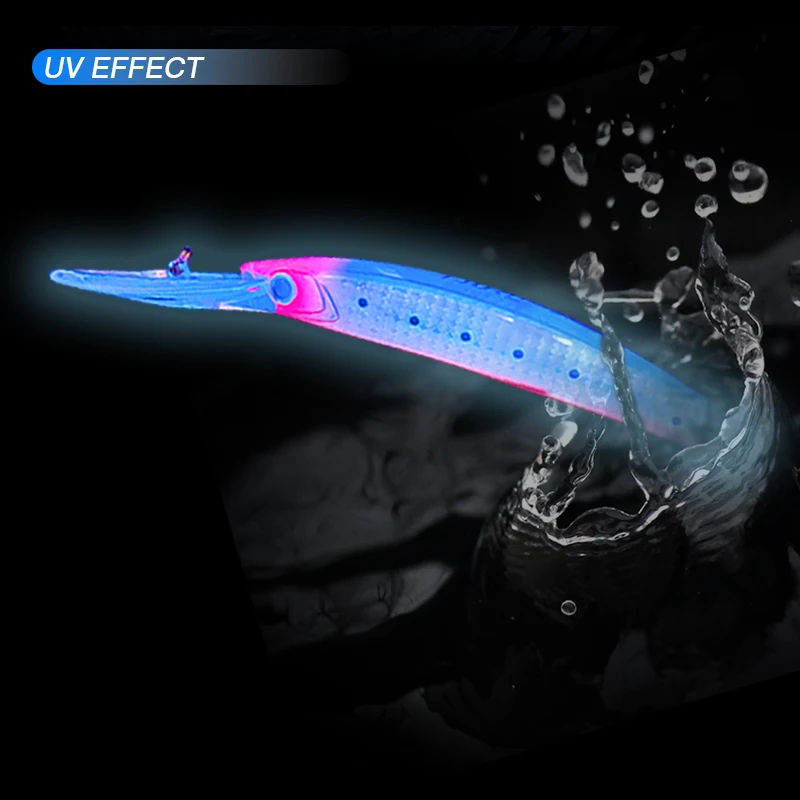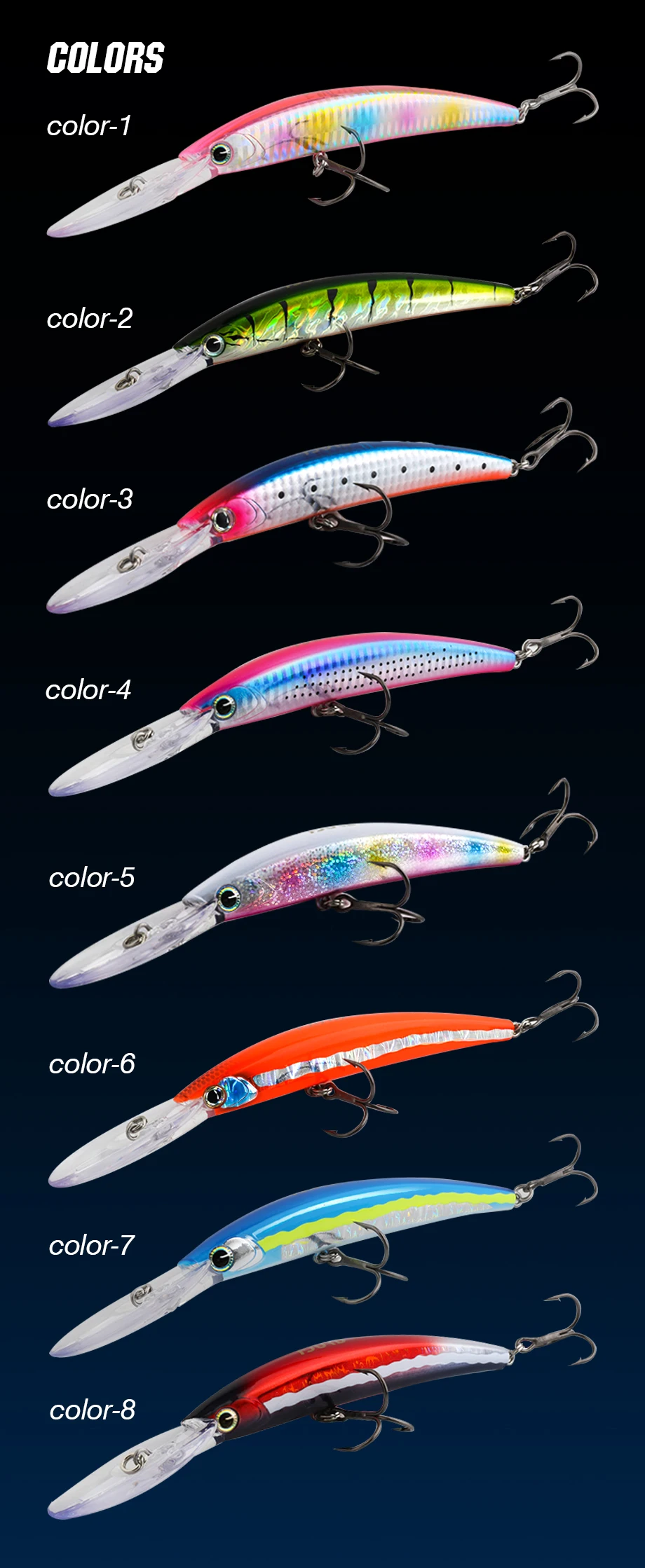 4.DEEP DIVING LIP- Saltwater fishing lures have extended diving lip for working deeper in the water, dives to 12 ft or more while casting and retrieving.