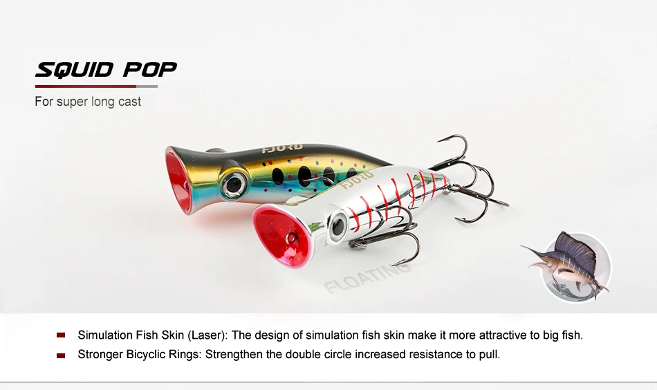 FJORD Squidopop 80mm 14g Super Long Casting Topwater Bait Saltwater Whopper Fishing Lure Artificial Wobblers Plastic Bait