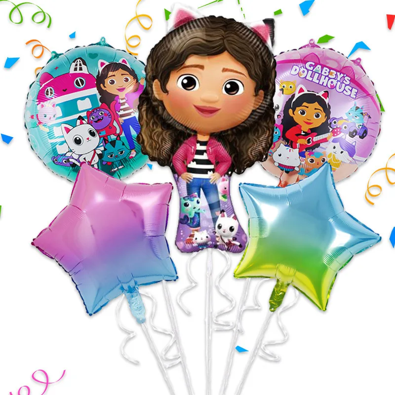Gabby Dollhouse Cats Birthday Decoration Balloon Disposable Tableware Cat Balloons Kids Gabby Doll House Figures Party Supplies