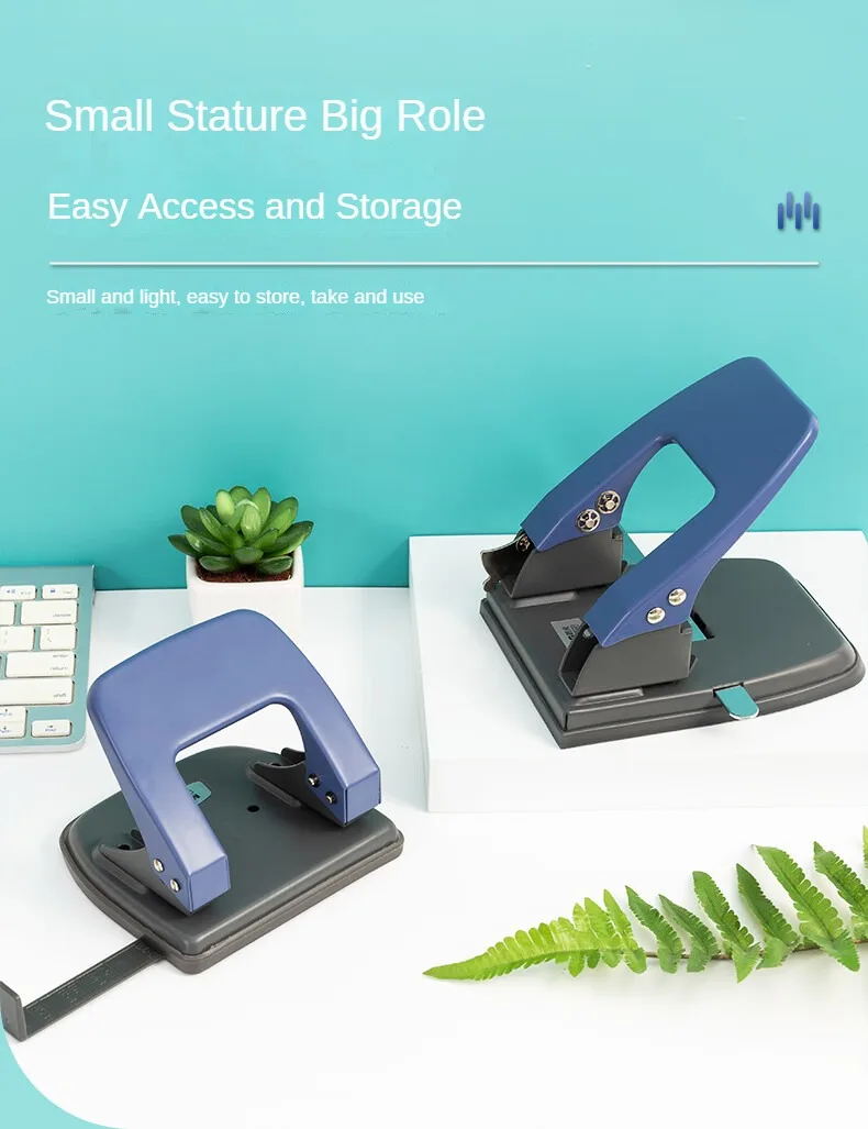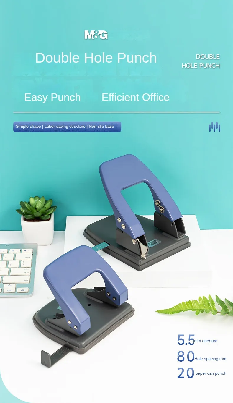M&G Medium 20 Page Puncher Portable Double Hole Puncher Diameter 5.5mm/ Hole Distance 80mm(with ruler) Blue Single Pack