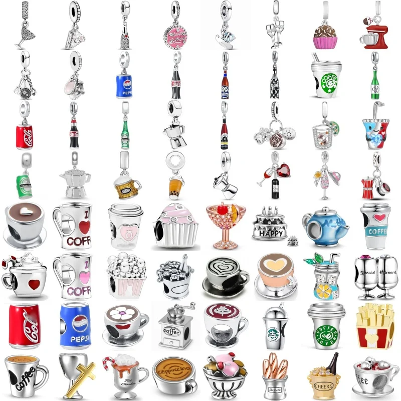New 925 Sterling Silver Coffe Cup Birthday Cake Bottle Pendant Bead Fit Original European Charms Bracelet Jewerly Accessories