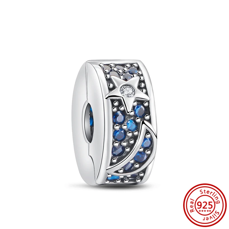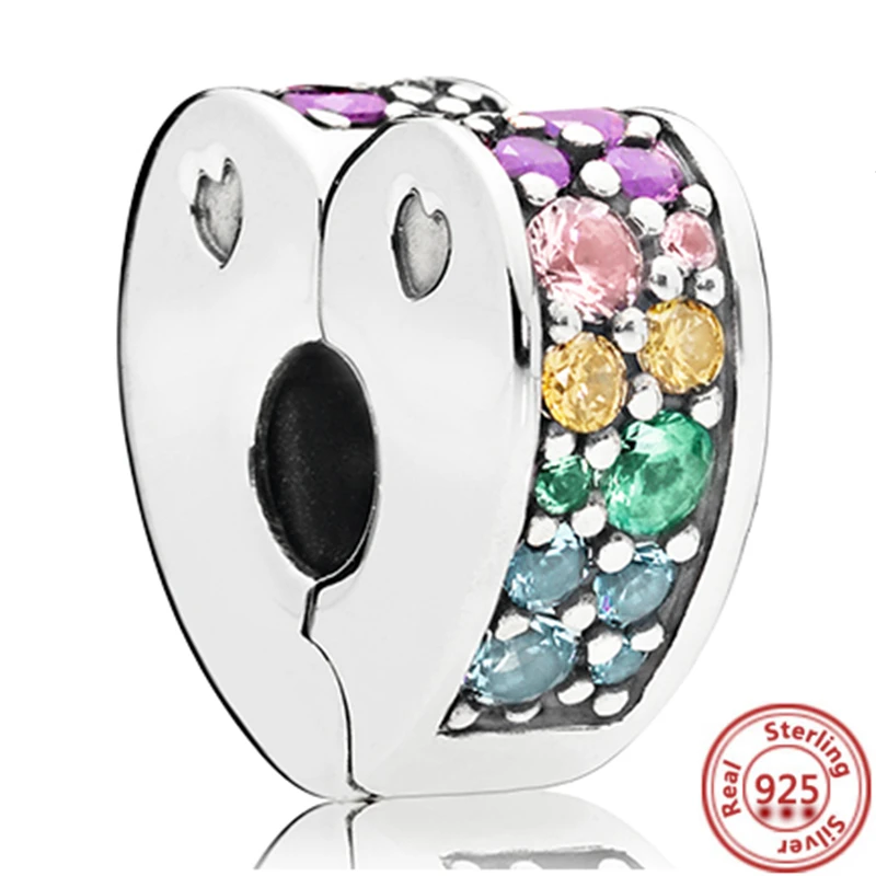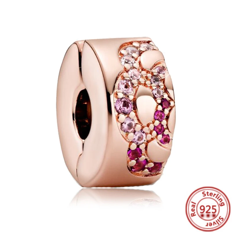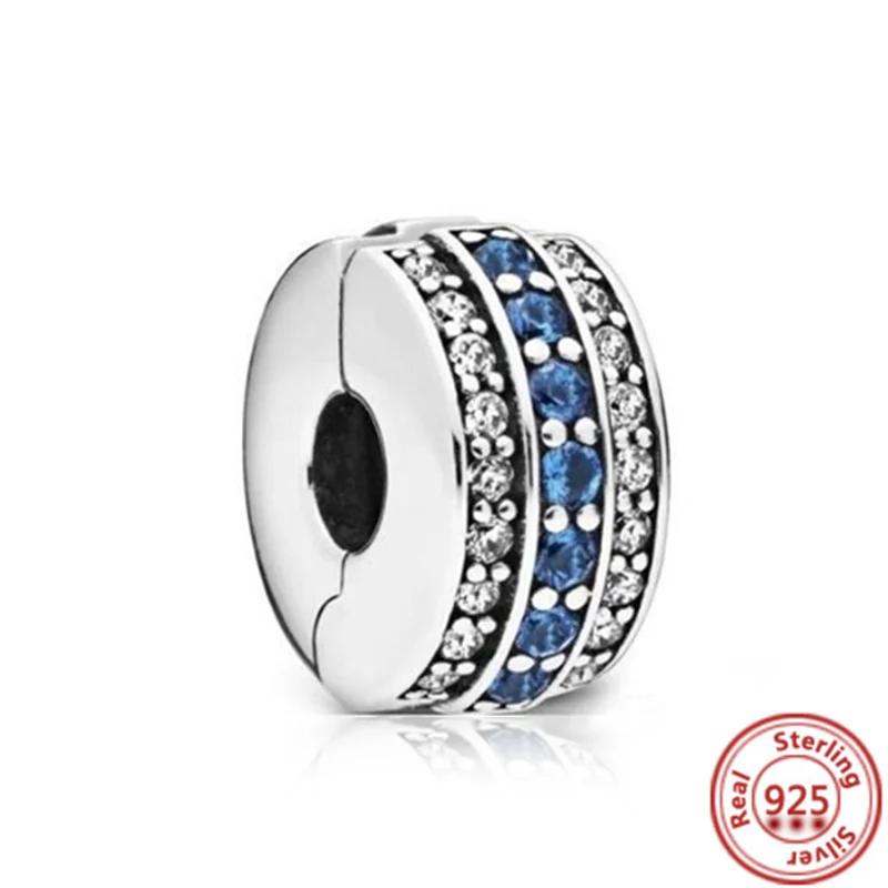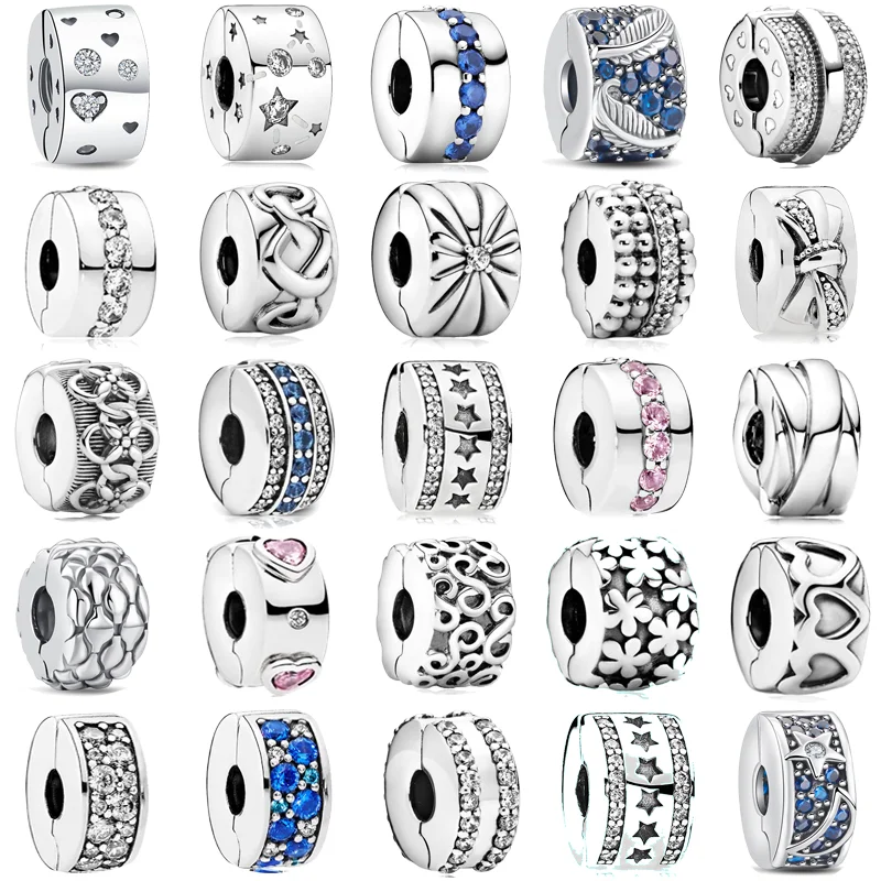 Silver Clasp 925 Sterling Silver CZ Pave Clip Charms Daisy Beads Stopper Safety Chain Fit Original Pandora Bracelet Jewelry Clip