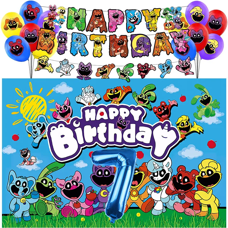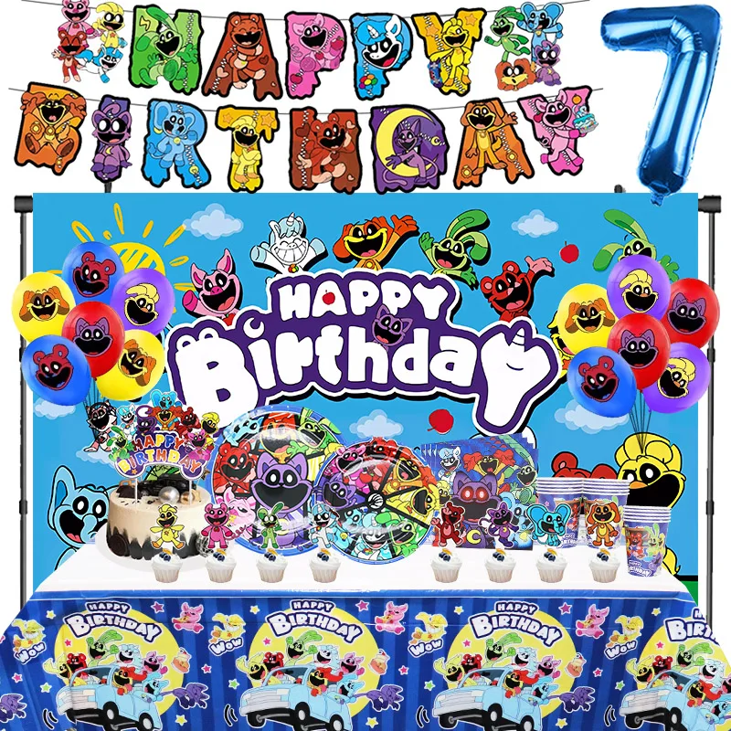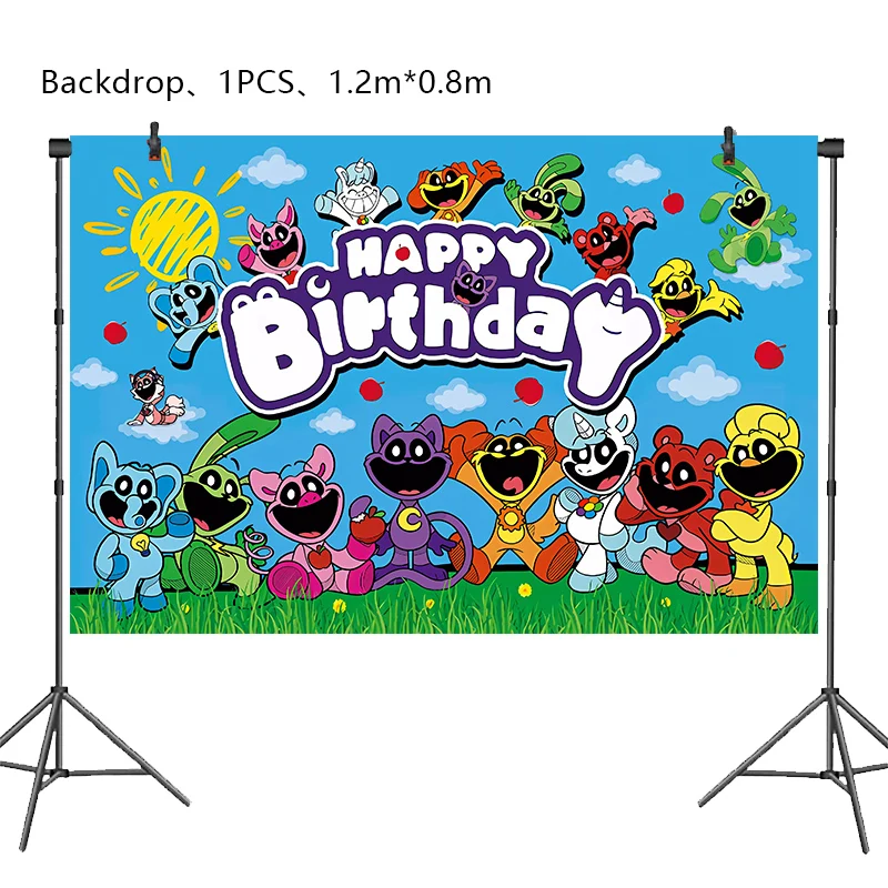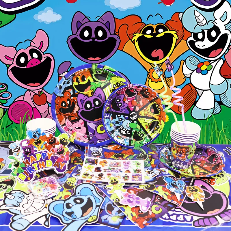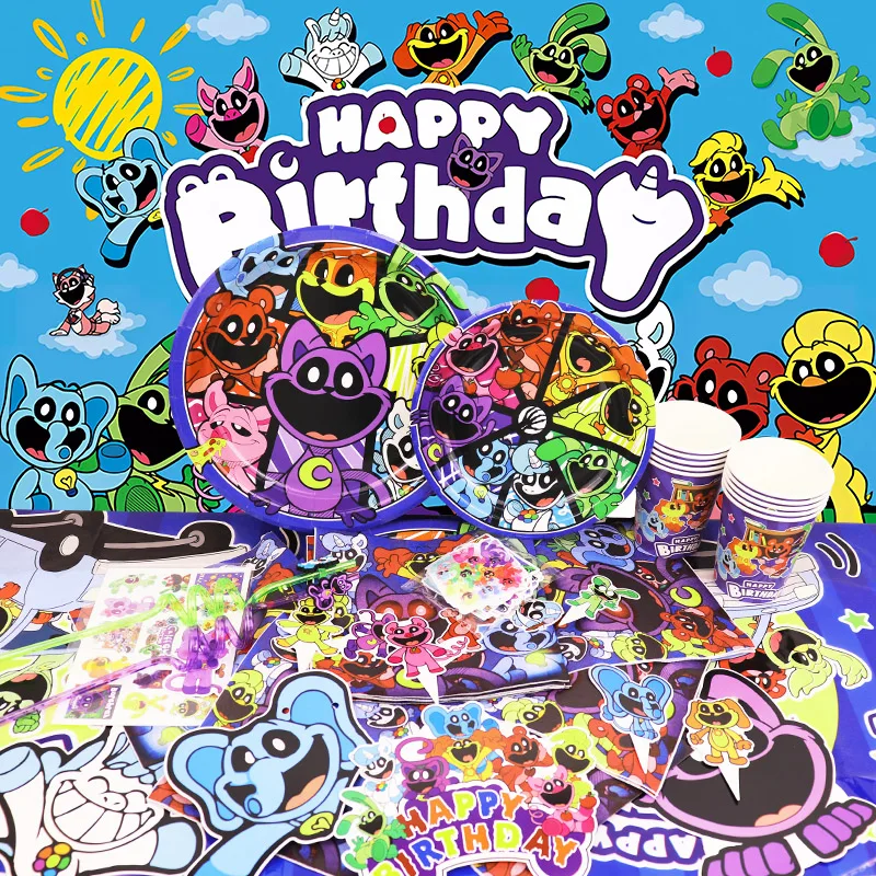 Smiling Critters Birthday Party Decoration Foil Latex Balloon Kids Event Supplies Disposable Tableware Catnap Banner Backdrop