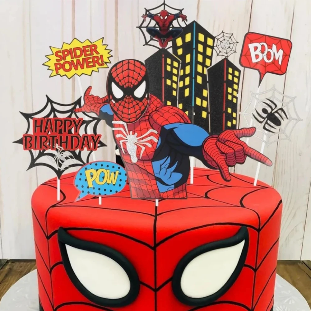 Spiderman Cake Toppers Superhero Birthday Cake Decorations Boys CupCake The Avenger Topppers for Kids Baby Shower Supplies Gifts