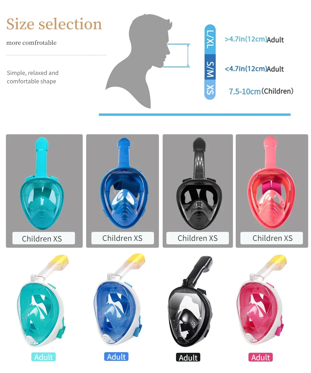 Underwater Scuba Anti Fog Full Face Diving Mask Snorkeling Respiratory Masks Safe Waterproof Swimming Equipment for Adult Kids