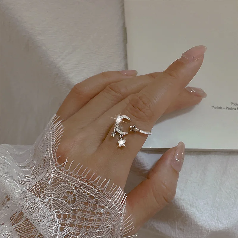 VENTFILLE 925 Silver Moon Tassel Opening Female Fashion Ins Ring