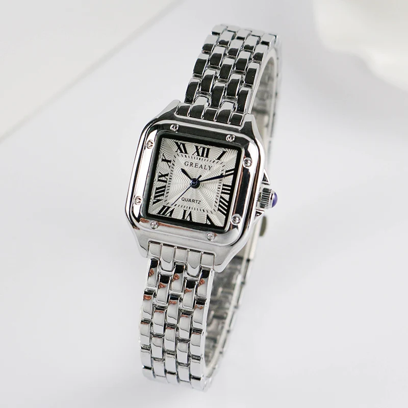 Women’s Fashion Square Watches 2021 Brand Ladies Quartz Wristwatch Classic Silver Simple Femme Steel Band Clock Zegarek Damski