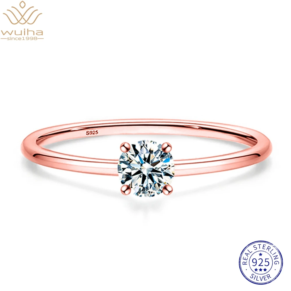 WUIHA Sparkling Real 925 Sterling Silver GRA Moissanite Diamond Anniversary Engagement Wedding Rings for Women Gift Fine Jewelry ShippingStone Szie:4MM